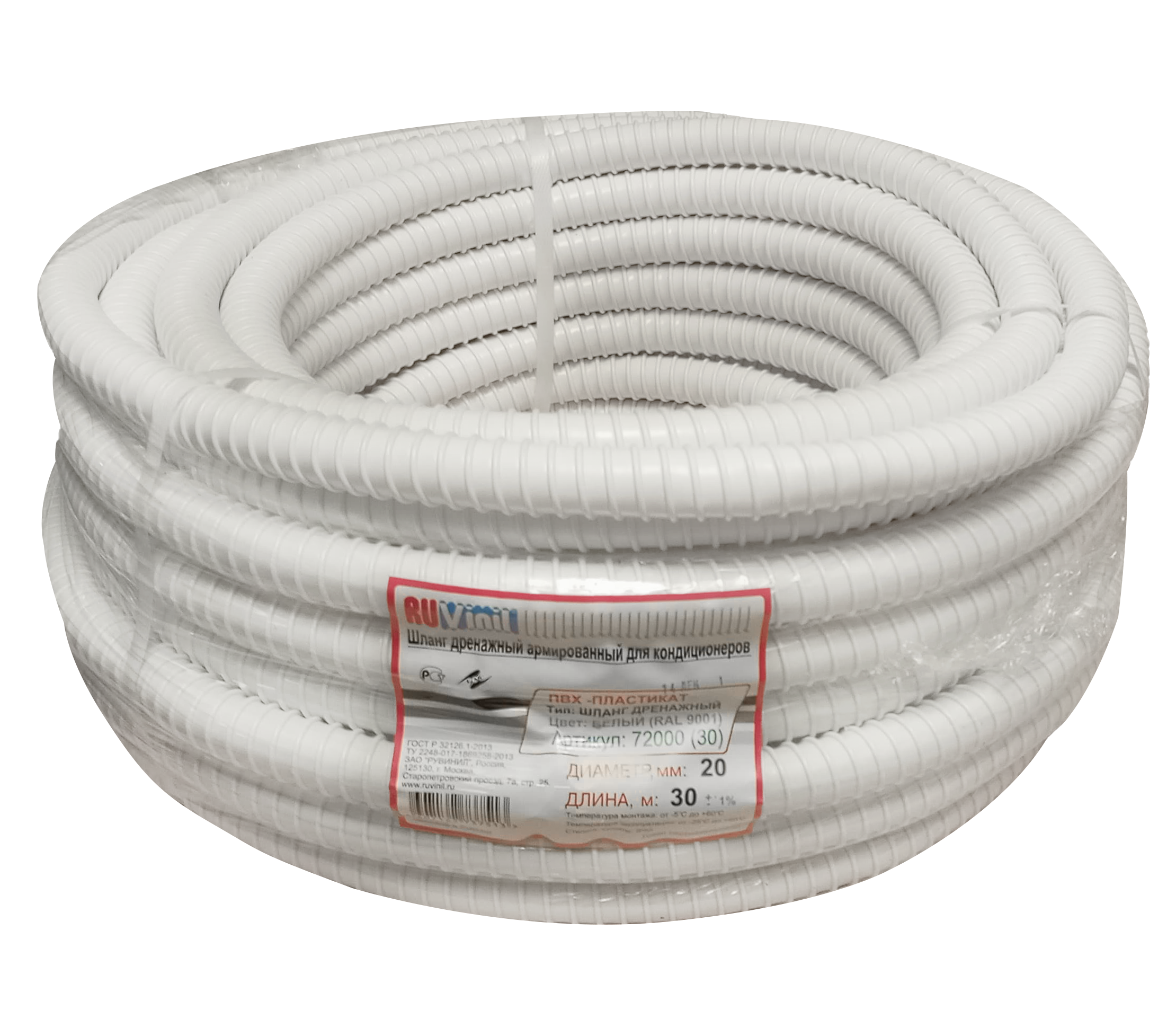 Дренажные шланги предназначены для слива конденсата из систем кондиционирования. С целью максимальной герметичности системы размер шланга указывается по внутреннему диаметру, так как он надевается на трубку (конус или горловину), выходящую из блока системы кондиционирования. С этой целью, а также чтобы дренажные шланги легко отводили конденсат из кондиционеров и сплит-систем далеко за пределы помещения, внутренняя стенка у шланга – гладкая.