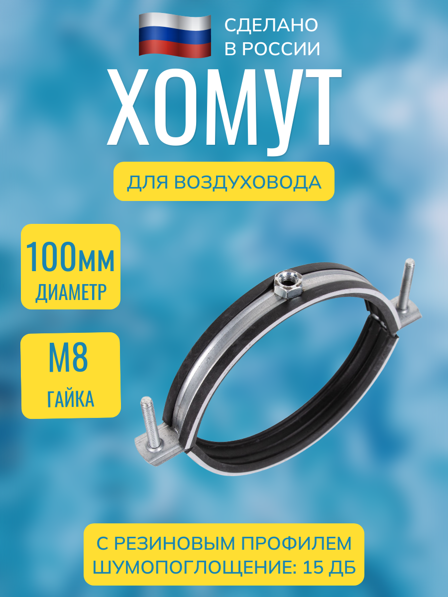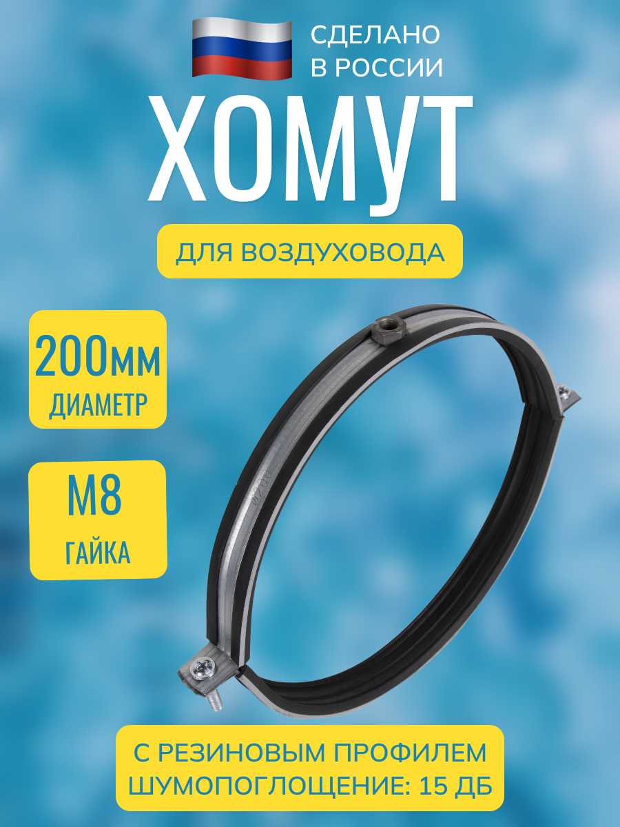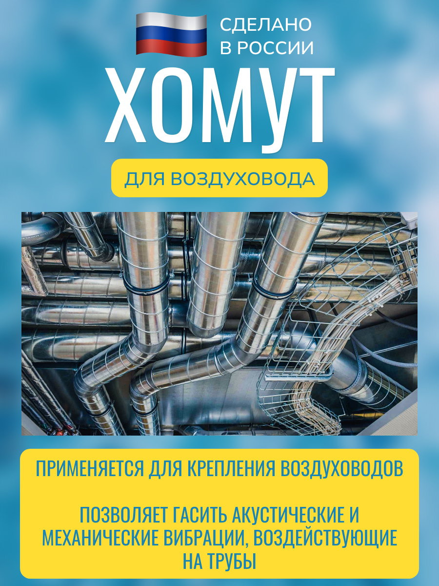 Хомут для воздуховода с резиновым профилем (ГАЙКА М8) применяется для крепления воздуховодов. Позволяет гасить акустические и механические вибрации, воздействующие на трубы. Изделия изготавливаются на основе гальванической оцинкованной стали, имеющей высокие показатели прочности. Применяемая в качестве уплотнителя резина обладает стойкостью к старению, поэтому их можно эксплуатировать в экстремальных температурных режимах. Толщина гальванизированного покрытия из цинка составляет порядка 8-10 мкм. Хомуты для вентиляции устойчивы к абразивному износу, не боятся прямого попадания солнечных лучей.