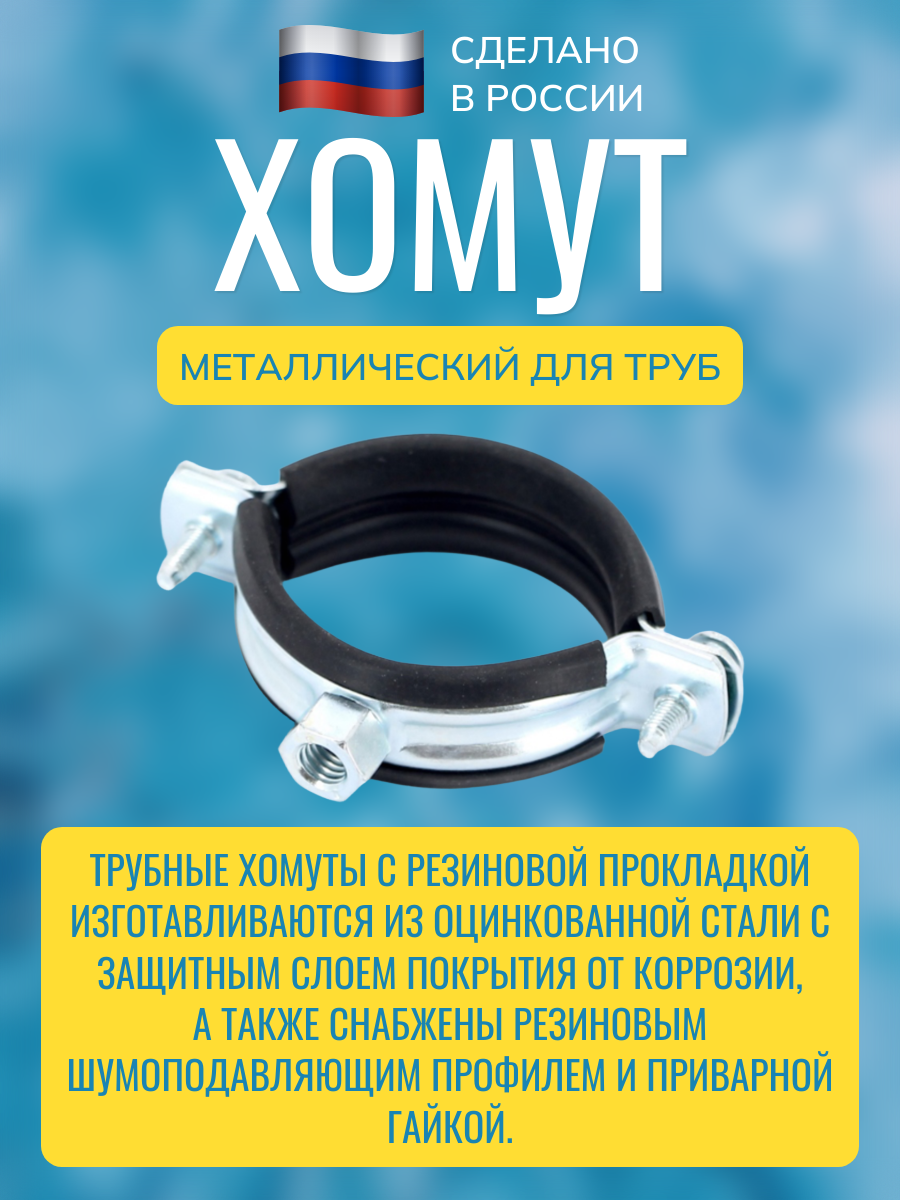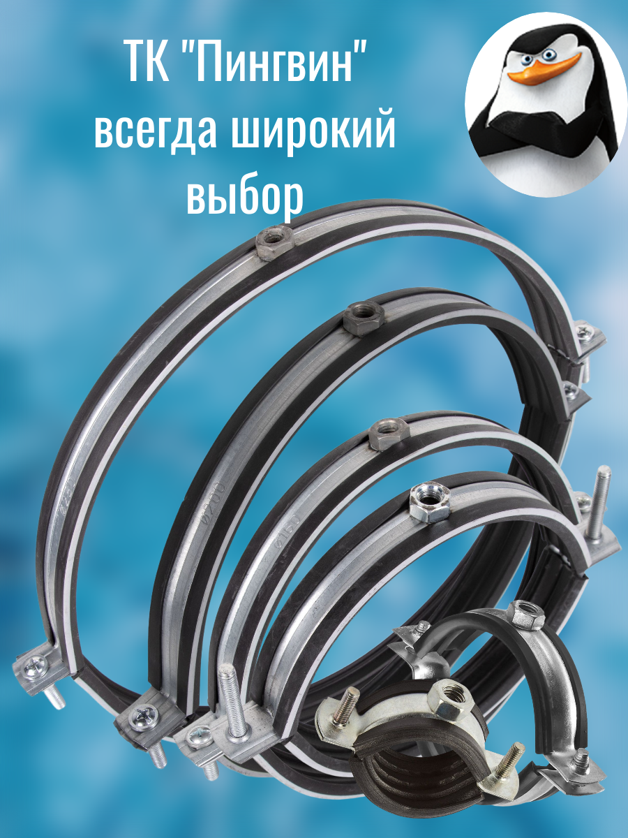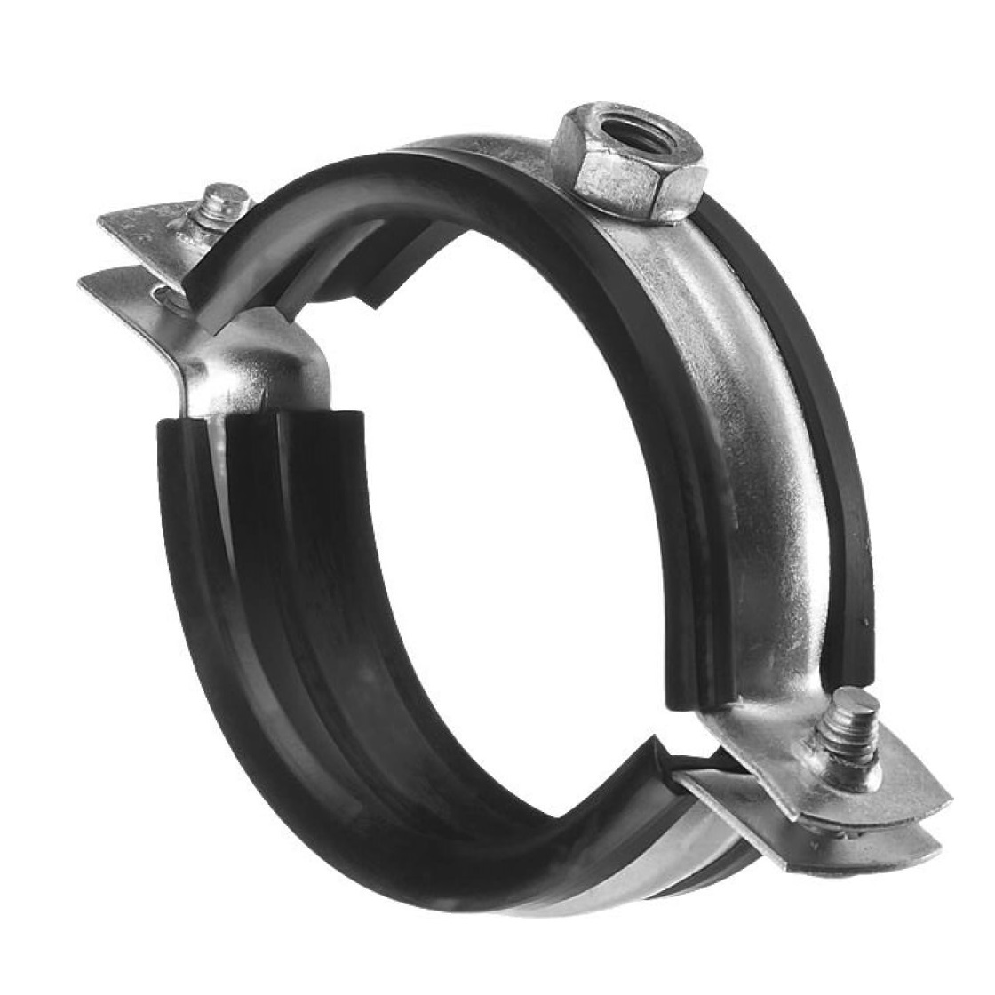 Сантехнические стальные крепежи различных размеров чаще всего используются для монтажа водопроводных и канализационных систем. Они способны обеспечить максимально надежное соединение труб на потолке, полу, стенах. С помощью металлических хомутов можно крепить изделия как в горизонтальном, так и вертикальном положении. Трубные хомуты с резиновой прокладкой изготавливаются из оцинкованной стали с защитным слоем покрытия от коррозии, а также снабжены резиновым шумоподавляющим профилем и приварной гайкой.