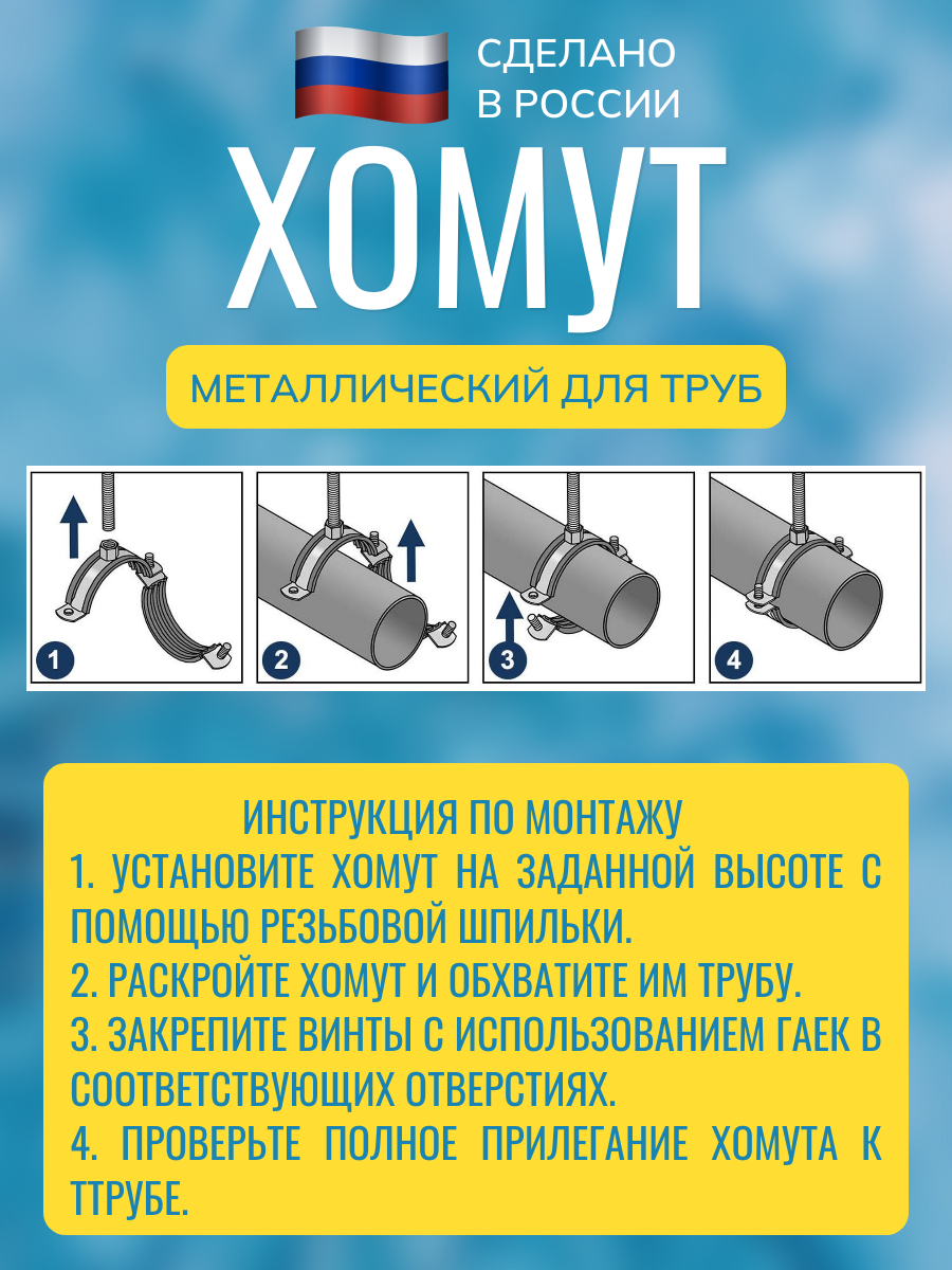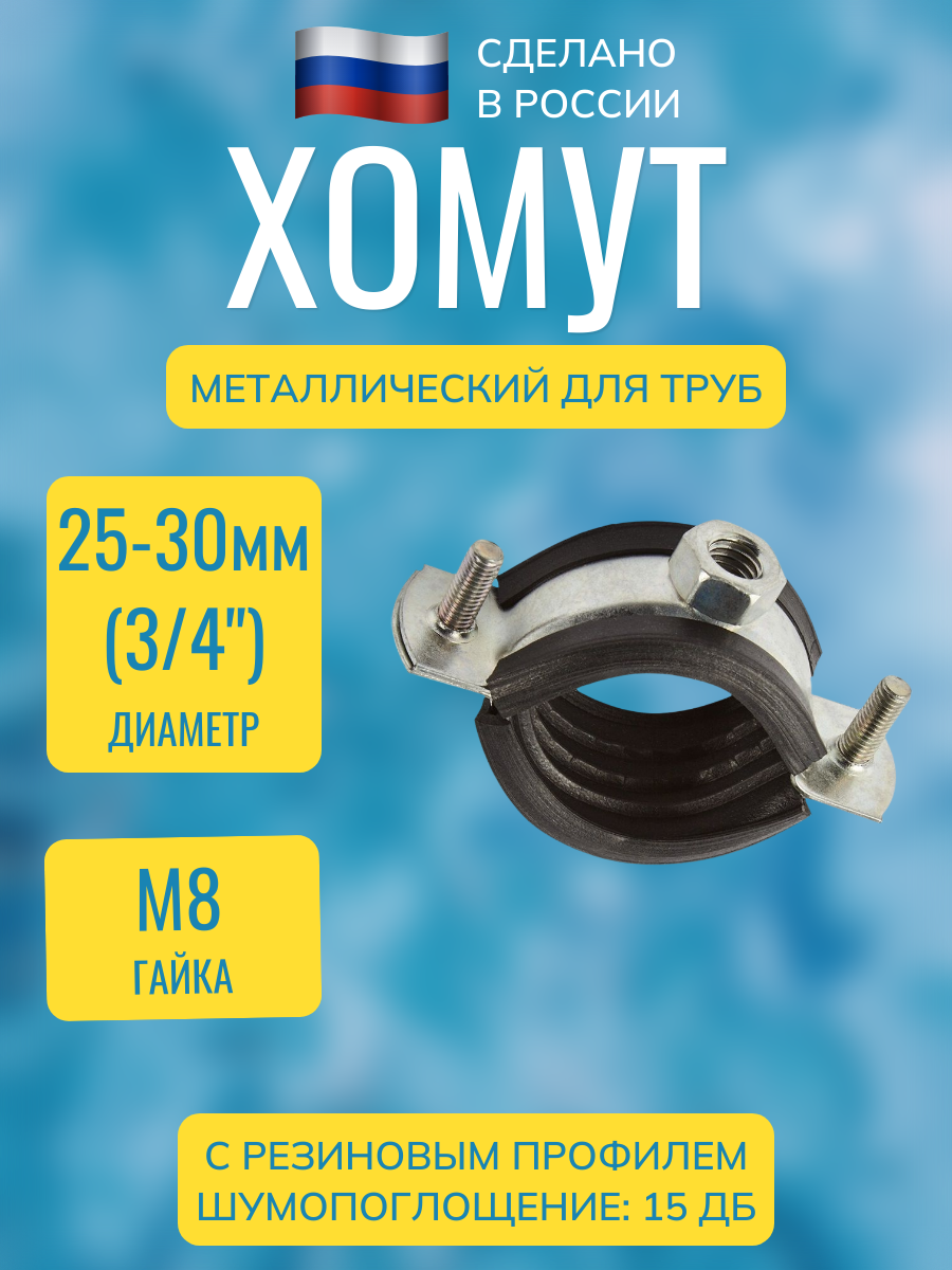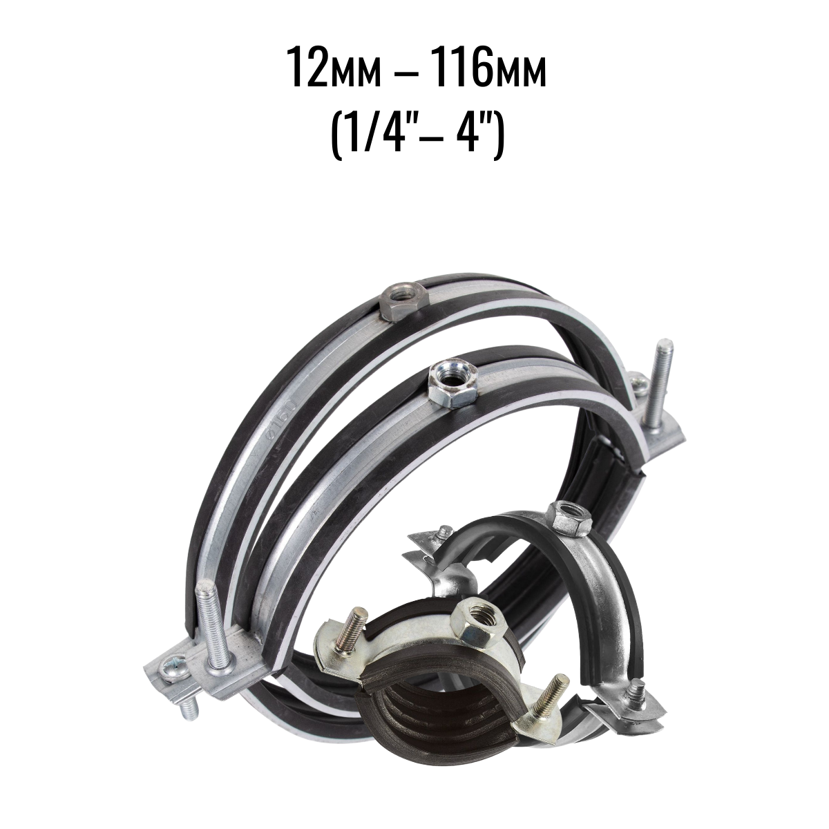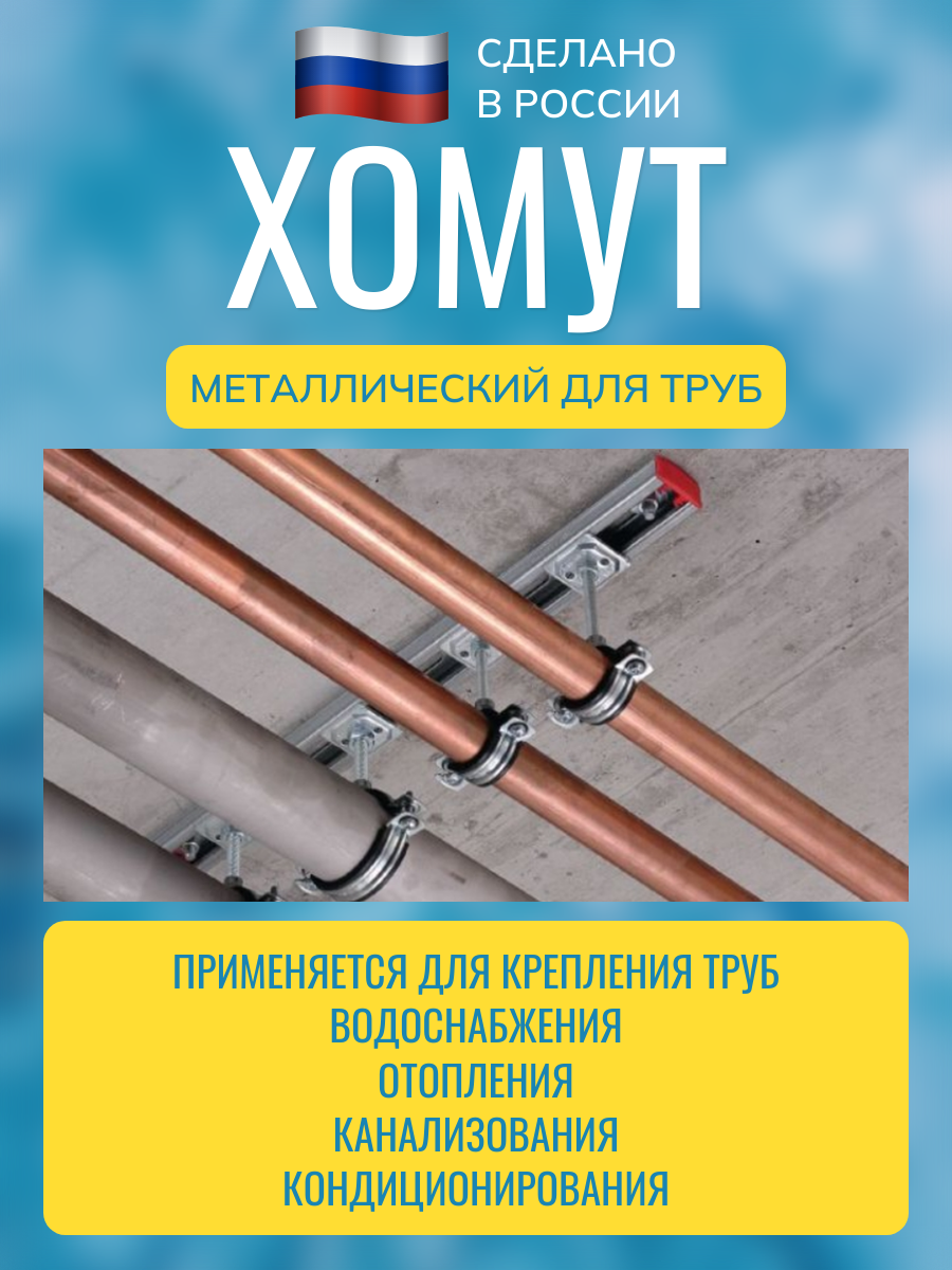 Сантехнические стальные крепежи различных размеров чаще всего используются для монтажа водопроводных и канализационных систем. Они способны обеспечить максимально надежное соединение труб на потолке, полу, стенах. С помощью металлических хомутов можно крепить изделия как в горизонтальном, так и вертикальном положении. Трубные хомуты с резиновой прокладкой изготавливаются из оцинкованной стали с защитным слоем покрытия от коррозии, а также снабжены резиновым шумоподавляющим профилем и приварной гайкой.