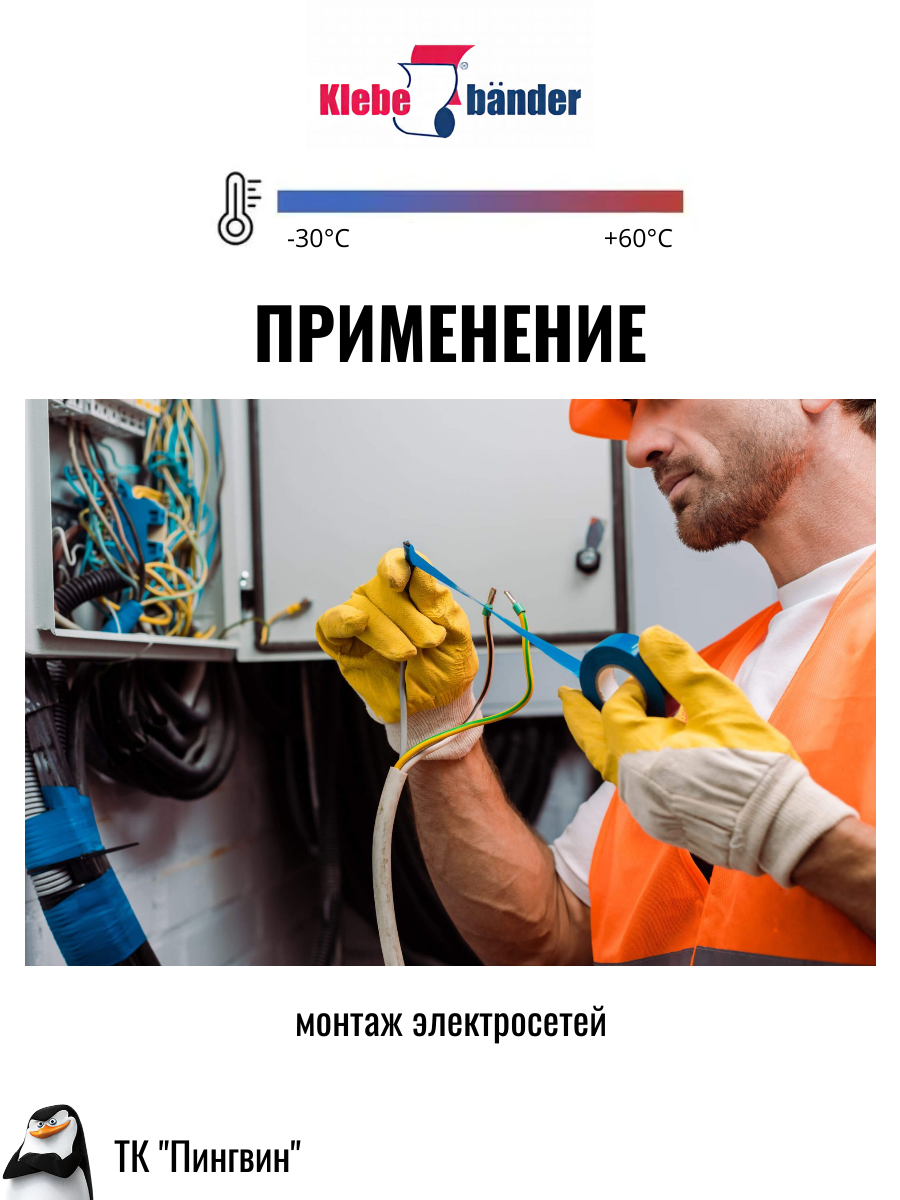 Изолента Klebebander используется для изоляции при электротехнических работах, жгутирования проводов и кабельных соединений.