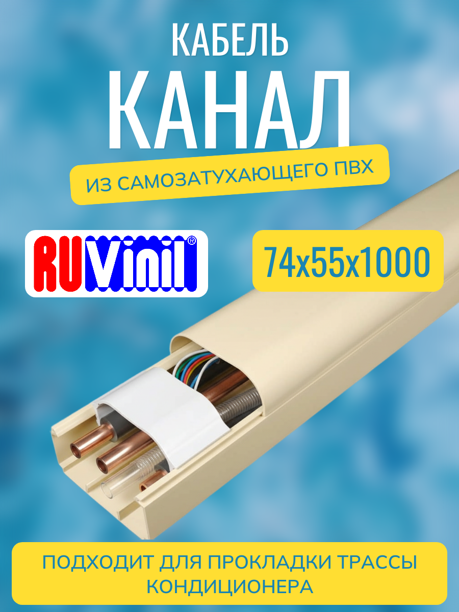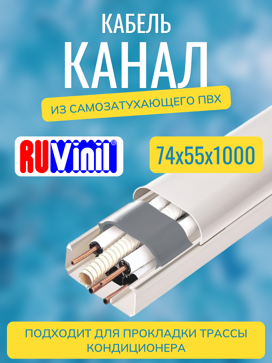 Кабельный канал парапетный из самозатухающего и ударопрочного ПВХ серии "Арктика". Размер 74х55х2000 мм, цвет белый. Минимальная партия отгрузки 1 уп. (16 м).