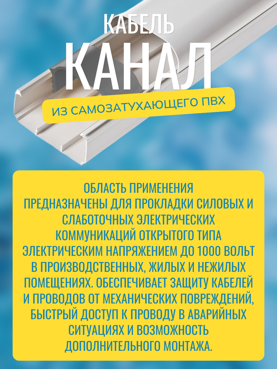 • самозатухающий материал ПВХ препятствует возгоранию от короткого замыкания и распространения пламени по кабель-каналу;