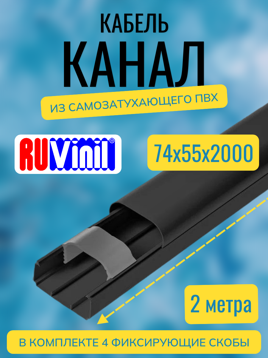 Кабельный канал парапетный из самозатухающего и ударопрочного ПВХ серии "Арктика". Размер 74х55х2000 мм, цвет черный.