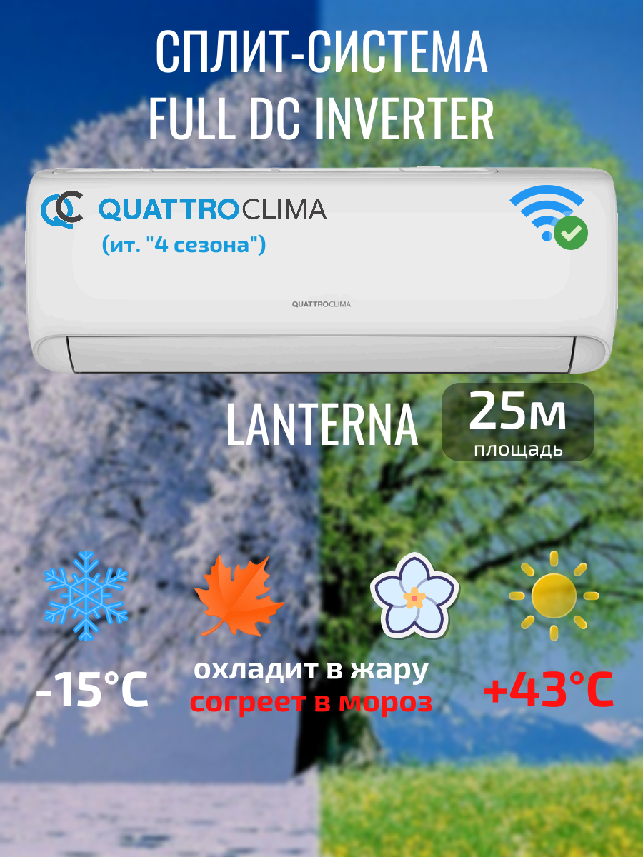 LANTERNA — это сочетание инноваций и высочайших стандартов надежности. Они обладают повышенным классом сезонной энергоэффективности А++ в режиме охлаждения и А+ в режиме обогрева, что стало возможным благодаря использованию современных, высокотехнологичных и надежных инверторных компрессоров.