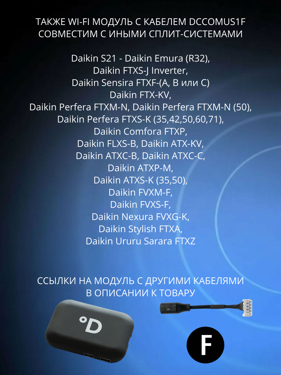 Daikin S21 - Daikin Emura (R32), Daikin FTXS-J Inverter, Daikin Sensira FTXF-(A, B или С), Daikin FTX-KV, Daikin Perfera FTXM-N, Daikin Perfera FTXM-N (50), Daikin Perfera FTXS-K (35,42,50,60,71), Daikin Comfora FTXP, Daikin FLXS-B, Daikin ATX-KV, Daikin ATXC-B, Daikin ATXC-C, Daikin ATXP-M, Daikin ATXS-K (35,50), Daikin FVXM-F, Daikin FVXS-F, Daikin Nexura FVXG-K, Daikin Stylish FTXA, Daikin Ururu Sarara FTXZ